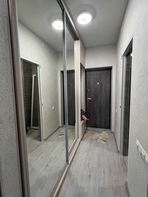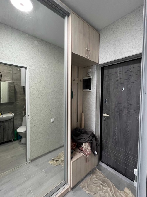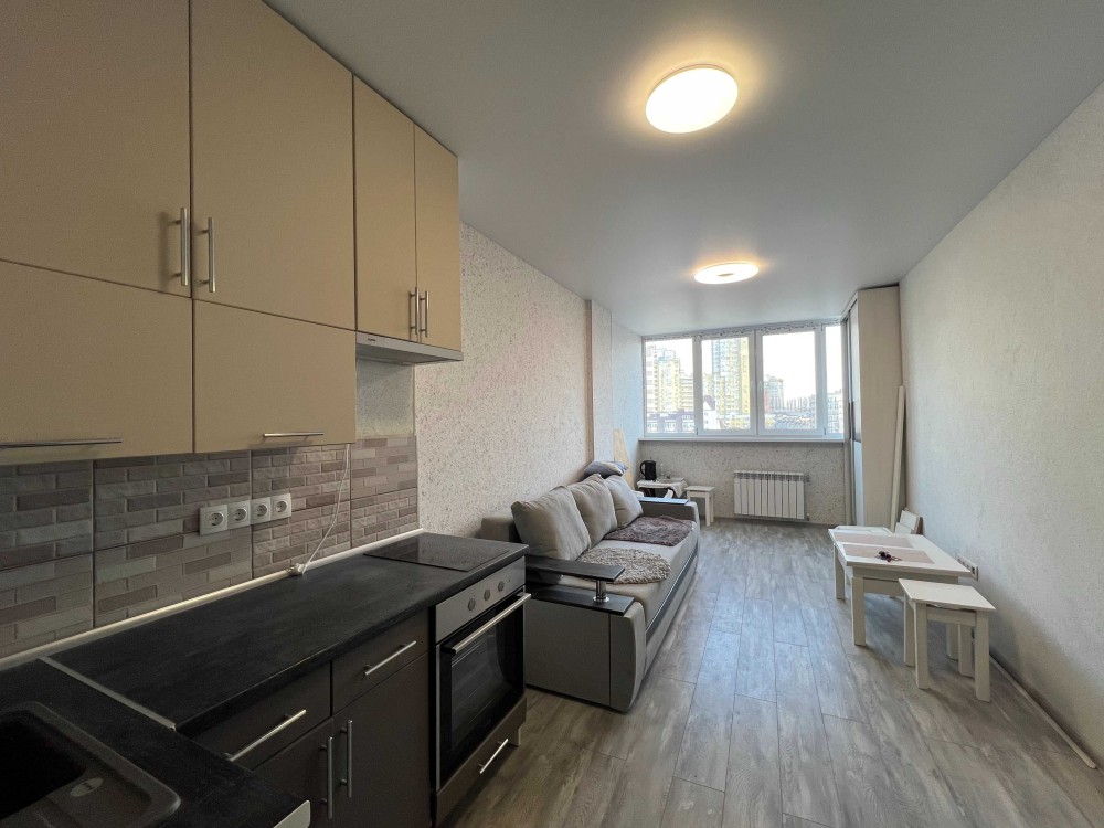 Перша здача, все нове. Поверх 13\24, загальна площа 27м2 смарт - студіо, Вбудована кухня, двоспальний диван, дві шафи, є необхідна техніка.