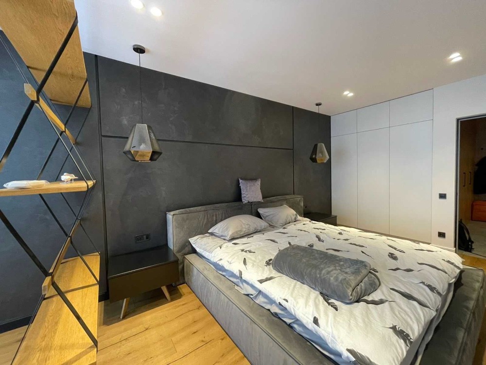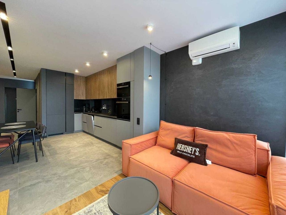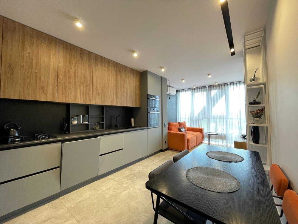 Загальна площа 60м2. Квартира повністю мебльована, також є вся необхідна побутова техніка. На кухні вмонтовані газова варильна панель і електрична духова, посудомийна машина. Розкладний диван. В кімнаті велике ліжко, 2 кондиціонери і 2 телевізори.