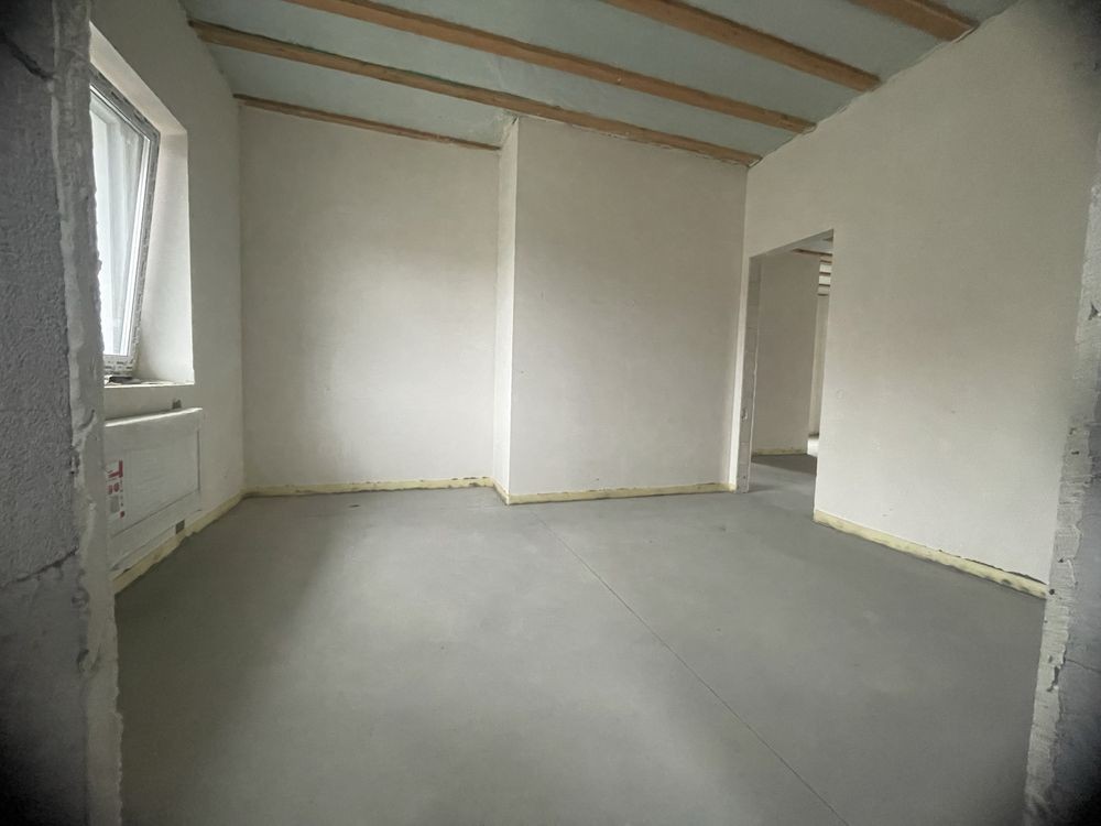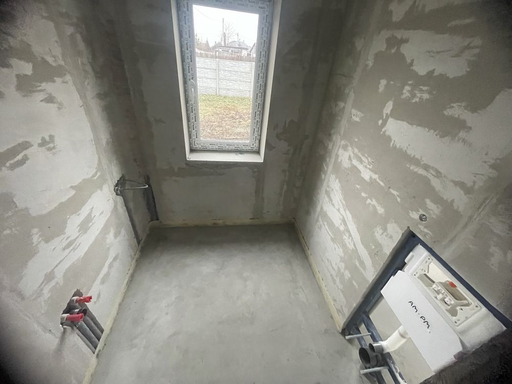 Розводка електрики, розводка сантехніки з опаленням ( тепла підлога + батареї), відштукатурені стіни, залита чистова підлога.