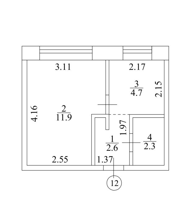 • Площадь кухни 4 м2