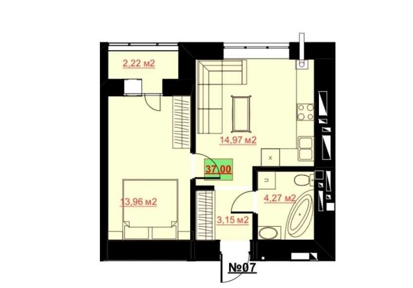 • Общая площадь 37 м2