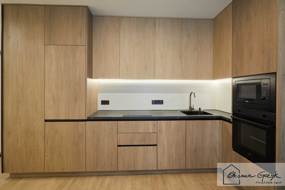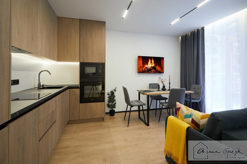 Кухня інтегрована в загальну зону відпочинку де можна снідати, обідати, вечеряти, а ще відпочивати за переглядом телевізора чи приймати гостей. Із загальної кімнати вихід на власний балкон з видом у двір, де забудовник ЖК заздалегідь продумав зелений ландшафт, щоб кожному жителю було комфортно та затишно.