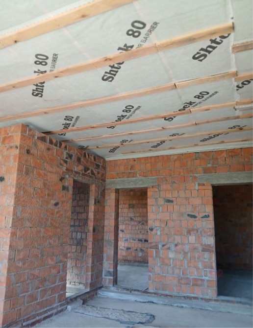 Дах - металочерепиця, утеплений мінеральною ватогю з паро та гідро барʼєром.