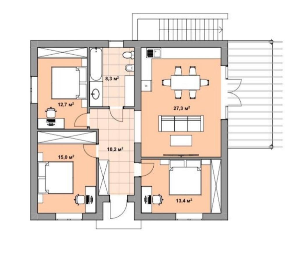• Общая площадь 90 м2