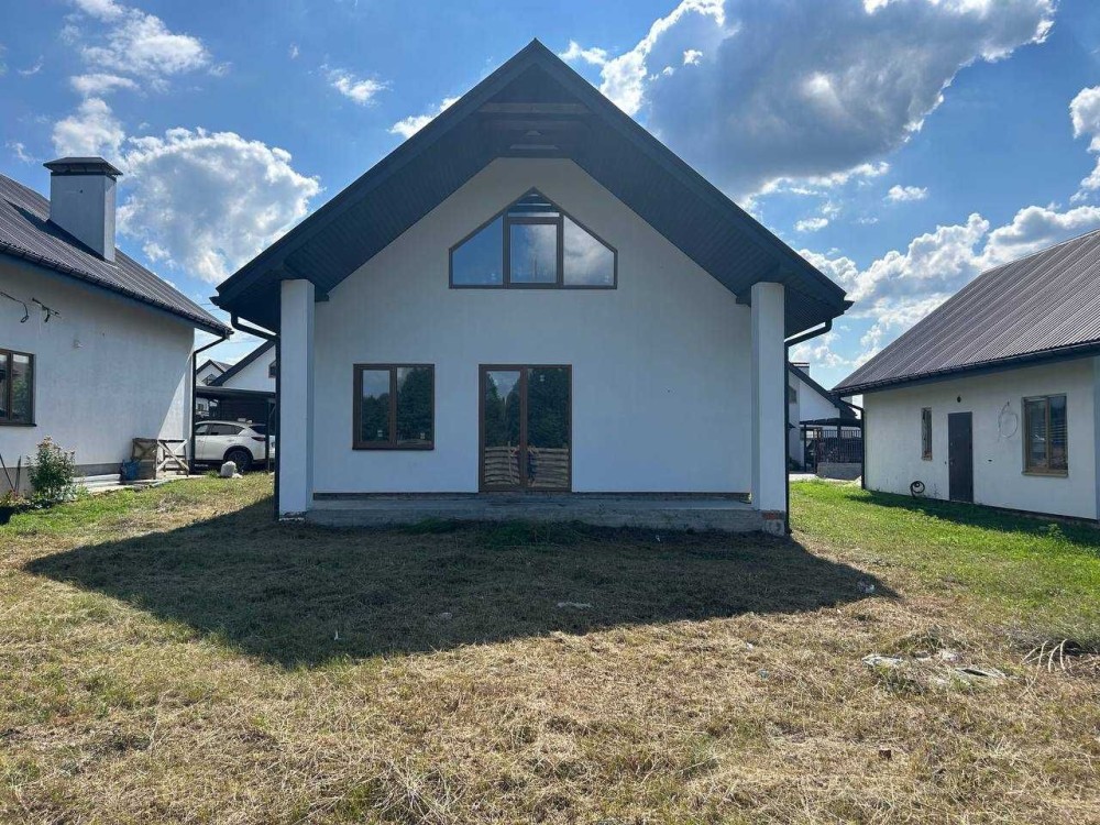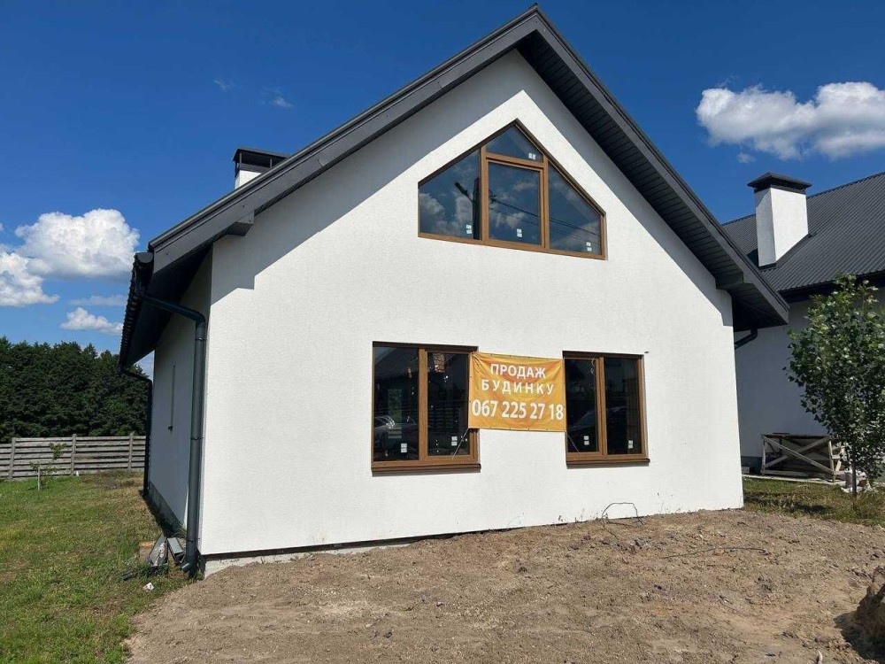 Продається новий індивідуальний житловий будинок котеджного типу загальною площею 131 м.кв. під чистове оздоблення, розташований в селі Крячки Фастівського (колишнього Васильківського) району Київської області на території нового житлового масиву із сучасною котеджною забудовою, що перебуває на відстані 20 км від станції метро «Теремки» міста Києва та за 1,5 км від міста Васильків. Житловий будинок складається з першого та мансардного поверхів. Загальна площа будинку із допоміжними спорудами становить 173,1 м.кв., з яких: а) площа будинку ‒ 131,0 м.кв., у тому числі житлова (основна) ‒ 94,1 м.кв. та допоміжна (підсобна) ‒ 39,6 м.кв.; б) площа тераси – 23,1 м.кв.; в) площа трьох балконів – 13,4 м.кв. (5,8 + 4,9 +2,7 м.кв.); площа ґанку – 5,6 м.кв. Котедж вміщує в собі 5 (п’ять) доволі просторих кімнат, 2 (два) санвузли (на кожному із поверхів), 1 (одне) технічне приміщення (котельня або бойлерна), 2 (два) коридори, 1 (одну) вітальню із виділеною еркером обідньою зоною, що поєднана з кухнею. Із вітальні є окремий вихід на велику терасу, з якої відкривається затишний вигляд на внутрішній двір. Кожна з трьох мансардних кімнат має окремий вихід на балкон. Над усією площею мансардного поверху розташоване містке горищне приміщення. Будинок приєднаний до електропостачання потужністю ‒ 12кВт (3 окремих фази). Має свердловину глибиною 55 метрів із фактичним дебітом (спроможною потужністю) ‒ 2,5 м.куб./год. та каналізацію септик з переливом на 11 м.куб. На усій площі першого (крім житлової кімнати) та у санвузлі мансардного поверхів встановлена система водяної теплої підлоги фірми «Rehau». По котеджу розведені: опалення, водопостачання і каналізація. В будинку передбачена можливість встановлення камінної топки, а також приєднання котеджу до газорозподільної мережі та всесвітньої мережі Інтернет. Індивідуальний житловий будинок розташований на земельній ділянці площею 0,075га з цільовим призначенням – (02.01) для будівництва і обслуговування житлового будинку, господарських будівель і споруд (присадибна ділянка). Під житловою забудовою перебуває 0,0115га земельної ділянки, решта 0,0635га займає просторий двір. Кадастровий номер земельної ділянки: 3221487004:03:006:0328. Земельна ділянка огороджена парканом із монолітного фундаменту, що опорядковане металевим штахетом із обох боків та металевим профілем з тильної та фасадної сторін. Заїзд у двір має відкатні ворота. На території двору (перед будинком) облаштоване загальне паркомісце на 2 (два) автомобіля, решта двору засіяне газонною травою. Котедж побудований з якісних матеріалів за проектом європейського архітектурного бюро. Так, фундамент, перекриття та міжповерхові сходи ‒ монолітні. Стіни будинку збудовані з газоблоку AEROC D500 (товщиною 300мм), що утеплений пінопластом 100мм. Внутрішні міжкімнатні перегородки виконані із цегли. Дах ‒ металочерепиця фірми «Ruukki», що утеплений мінераловатними плитами загальною товщиною 200мм. Вікна вироблені з профілю фірми «Rehau» серії EVRO 70. Фасад котеджу покритий акриловою штукатуркою. Будинок за усім периметром має вимощення шириною 0,9 метри, що облаштоване фігурними елементами мощення (ФЕМ). Зручне ергономічне планування будинку, а також наявність високих стель обох поверхів дає можливість відчувати себе вільно і затишно. Завдяки правильному утепленню зовнішніх стін будинку, у ньому прохолодно влітку та тепло вз
