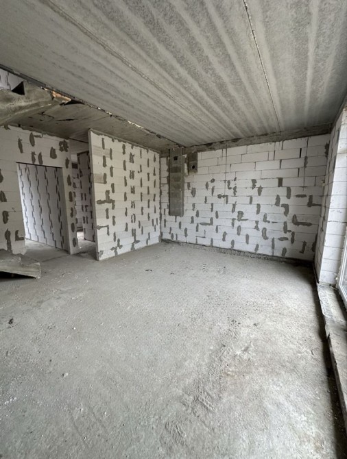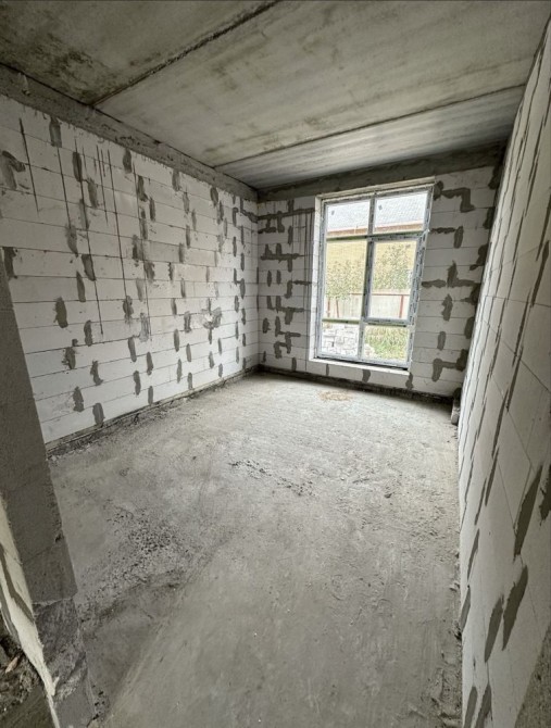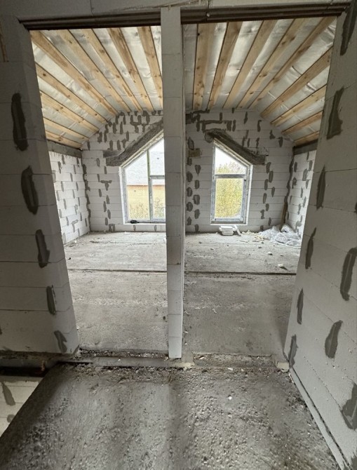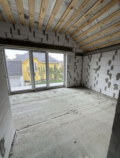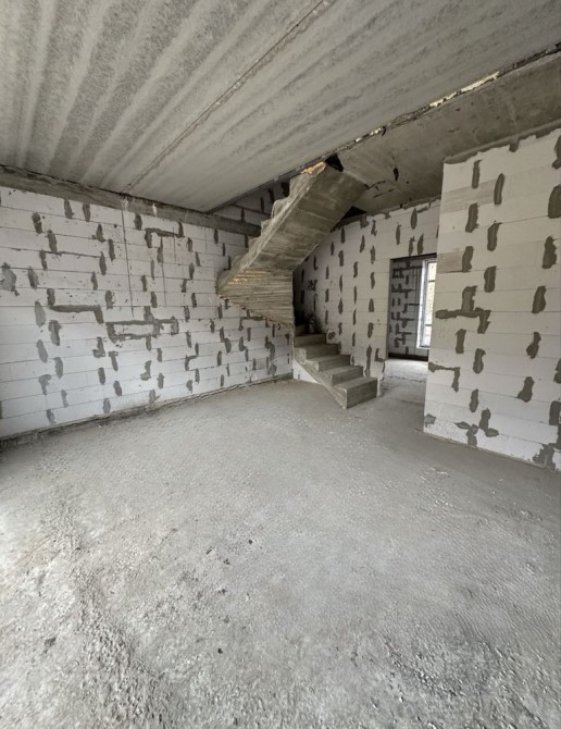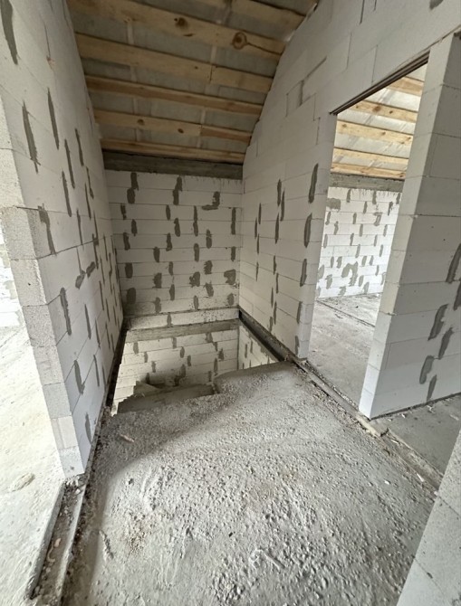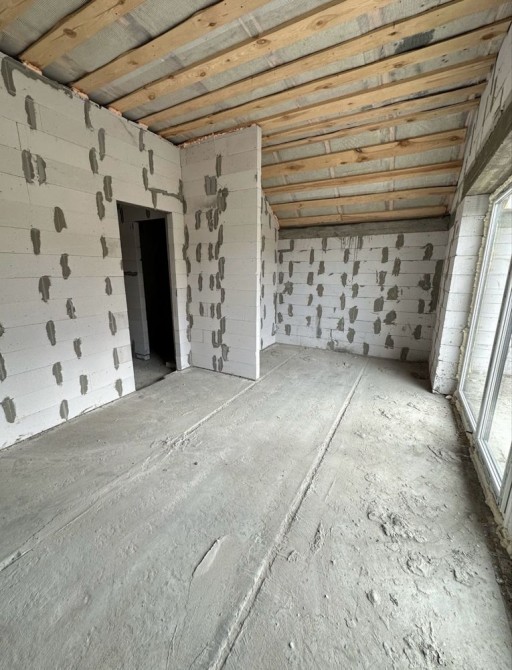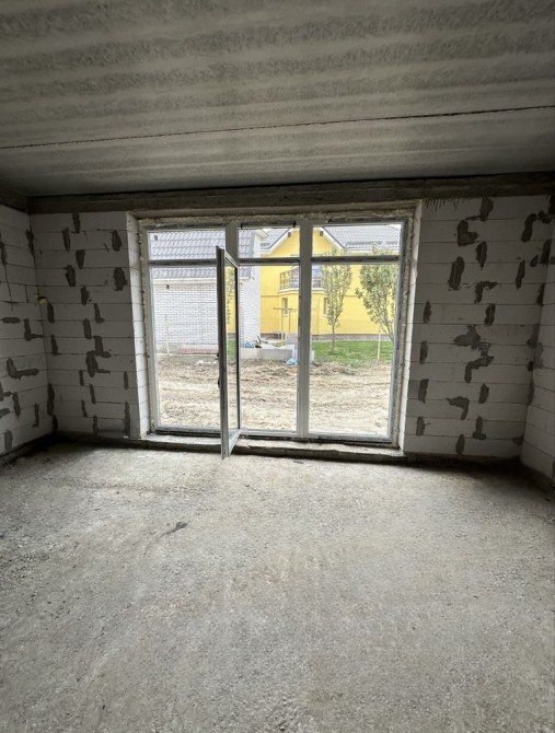 Планування - перший поверх велика кухня-вітальня з величезними панорамними вікнами, виходом на задній дворик з терасою під навісом, також на першому поверсі є житлова кімната та санвузол. У вартість входять монолітні сходи на другий поверх. На другому поверсі три кімнати, одна з яких з виходом на балкон.
