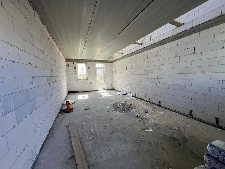 Двоповерховий будинок площею 72 м² зведений із газоблоку, утеплений пінопластом та накритий міцною металочерепицею.