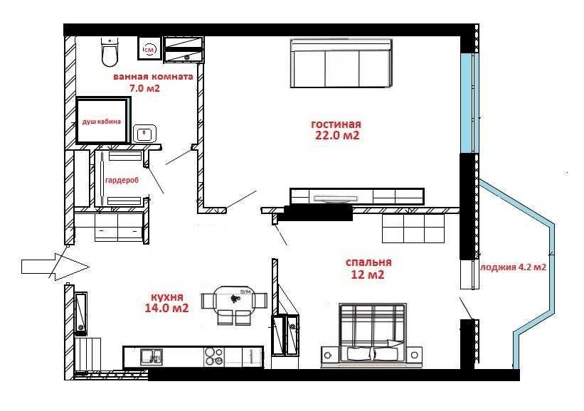 • Общая площадь 60 м2