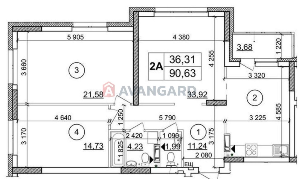 • Общая площадь 91 м2