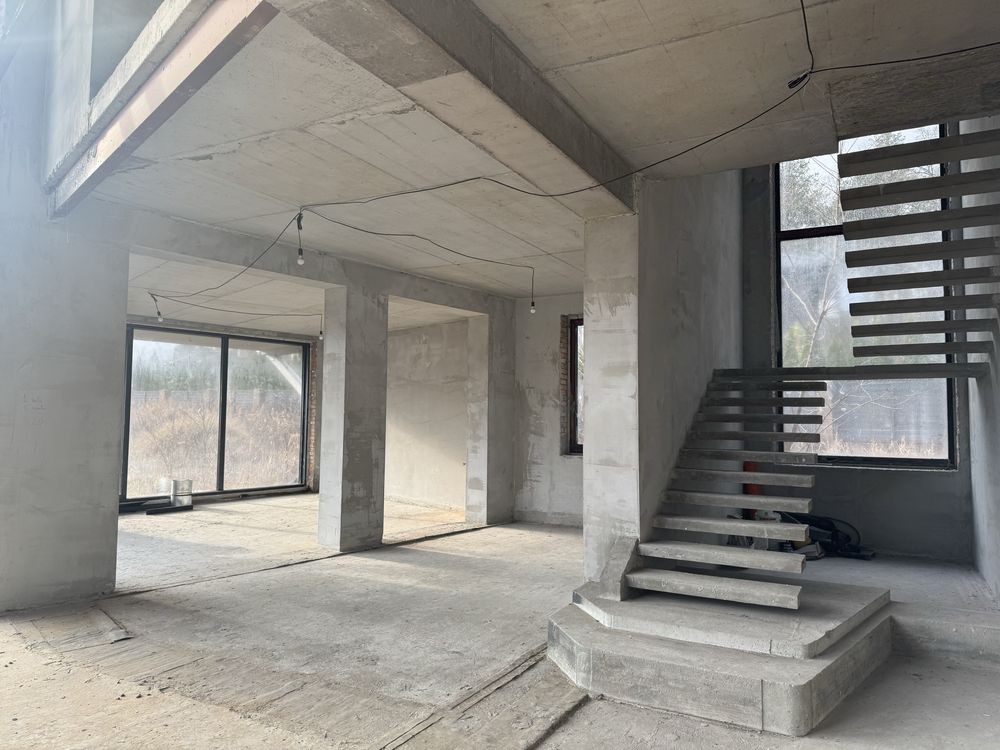 Коттедж 409 м кв , два этажа, отдельный гараж. газ, 22 кВт электричества, септик, скважина забора воды. Выполнены сан технические работы, коммуникации заведены в дом, в доме стартовая штукатурка. 750000 уе торг