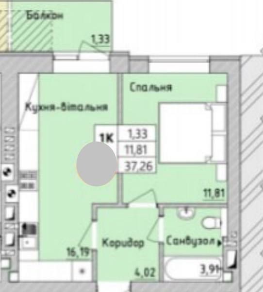 Квартира спроєктована максимально раціонально: простора кухня-вітальня, окрема затишна спальня, коридор з місцем для шафи та зручний санвузол. Є балкон, що додає простору та світла.
