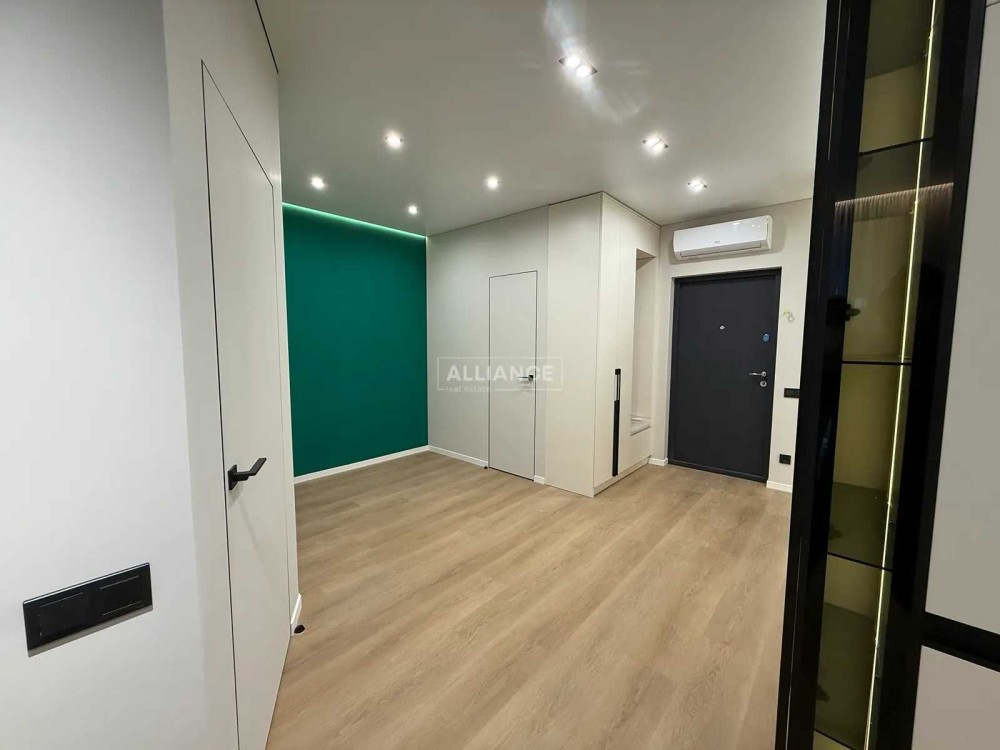 Квартира з якісним дизайнерським ремонтом. По всій площі встановлено теплу підлогу, покриття — зносостійкий кварцвініл. Кухня повністю укомплектована технікою Whirlpool, є пральна машина та кондиціонер з режимами обігріву й охолодження.