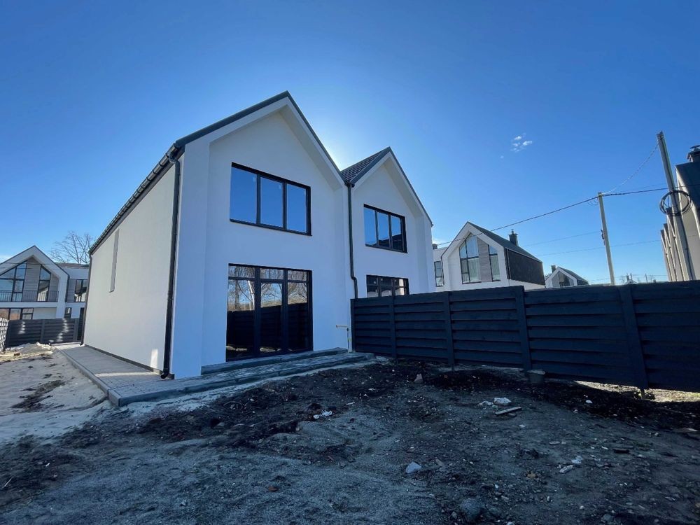 Дуплекс має загальну площу 125 м² і знаходиться на доглянутій ділянці 2,7 сотки — цього простору достатньо для облаштування затишного двору, зони барбекю чи дитячого майданчика.