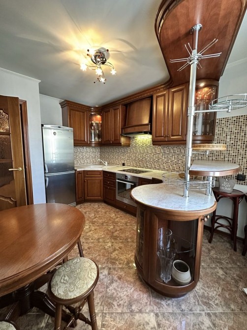 Квартира облаштована сучасними деревʼяними меблями у класичному стилі та побутовою технікою. Всі меблі коштовні італійські - залишаємо.