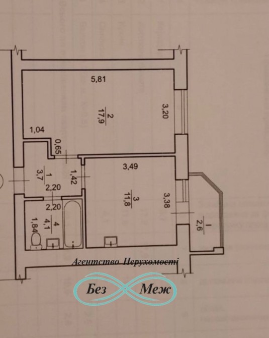 Квартира розташована на 4 поверху 5 поверхового будинку, загальною площею 41 м2.