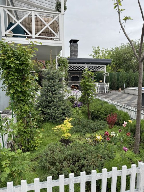 Уся територія – ландшафтний дизайн. Полив для газону та краплинний під кожне дерево та кущ. Колекція хвойних дерев. Магнолії, тюльпанове дерево, скельники, бансай. Великий роза