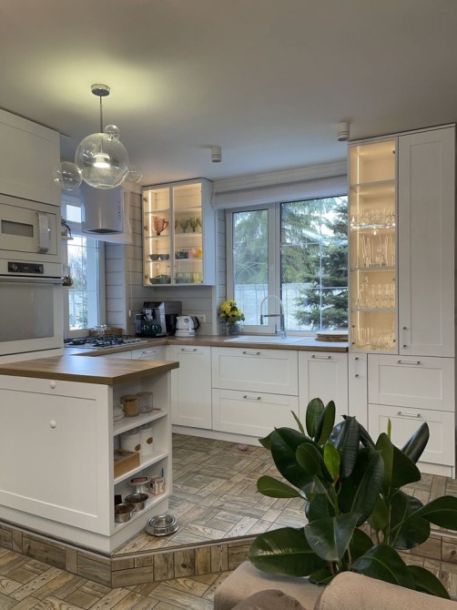 З меблями на замовлення, виконана за дизайном проекту. Вихід на верхню терасу. Повиту гліцинією.