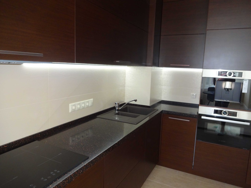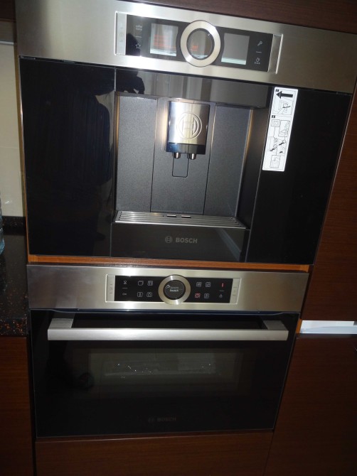 Є вся техніка (чайник, індукційна поверхня, духовка з функцією мікрохвильової печі, повноцінний холодильник) і весь посуд для готування і споживання їжі. Автоматична вбудована зернова кавова машина.