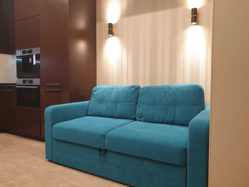 Кухня з зоною вітальні: розкладний диван на спальне місце шириною 140 см.