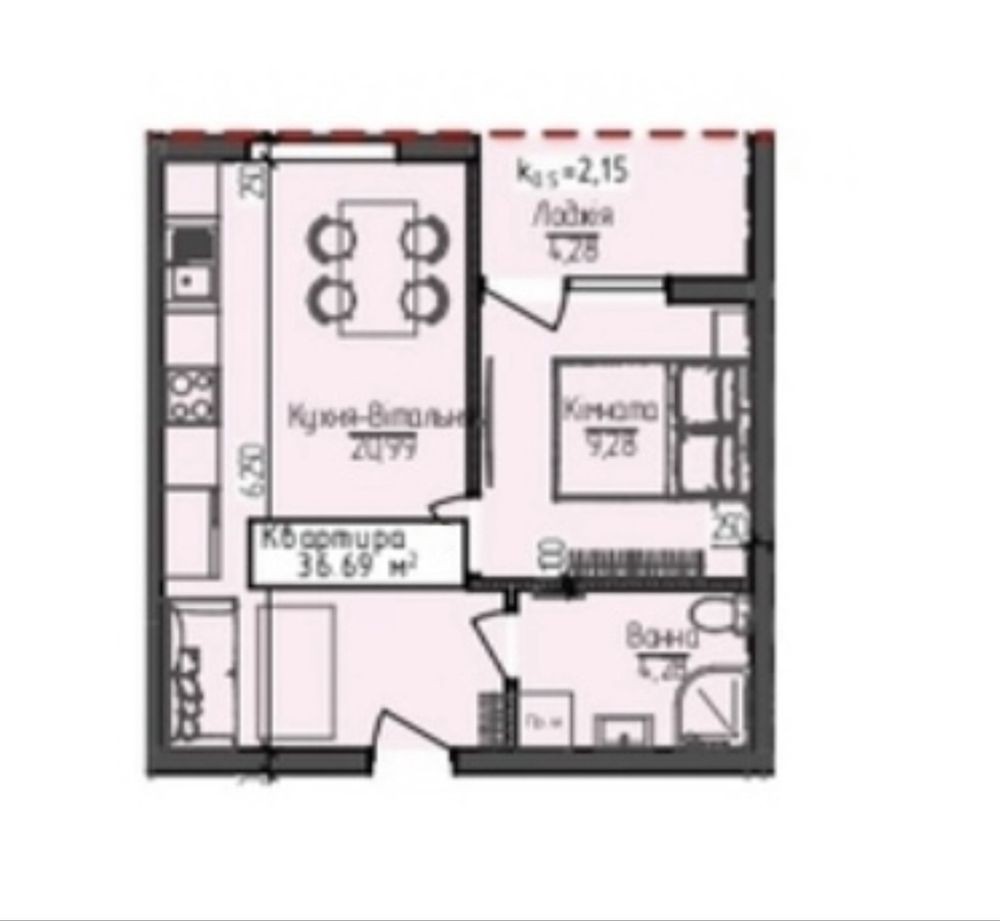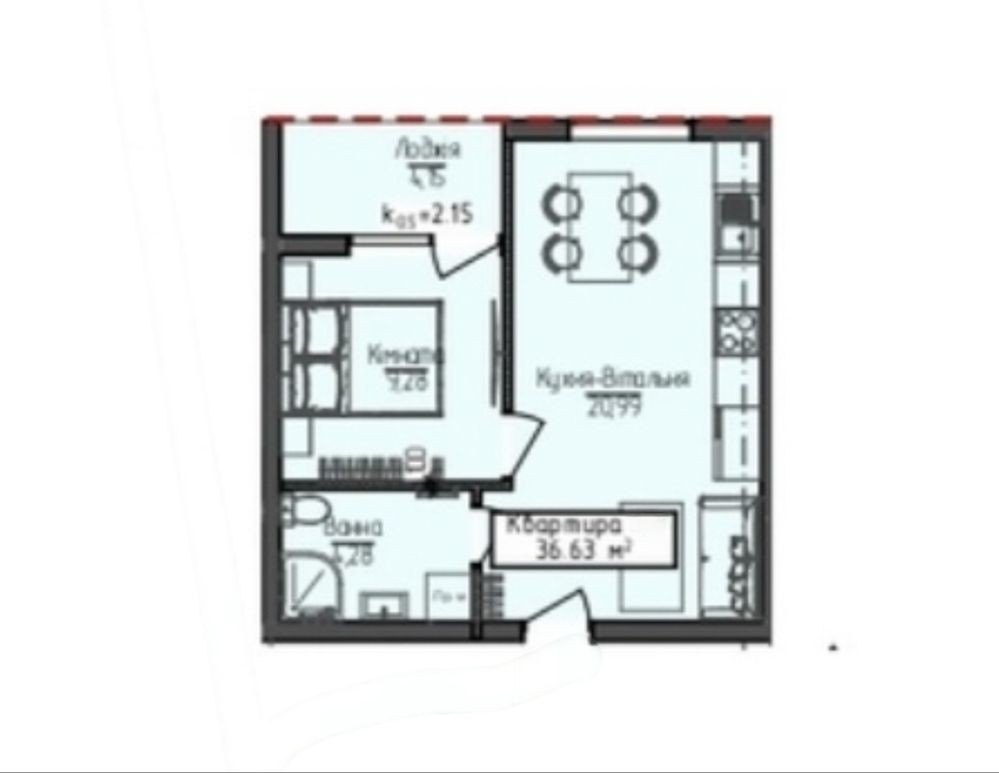 • Общая площадь 36.69 м2
