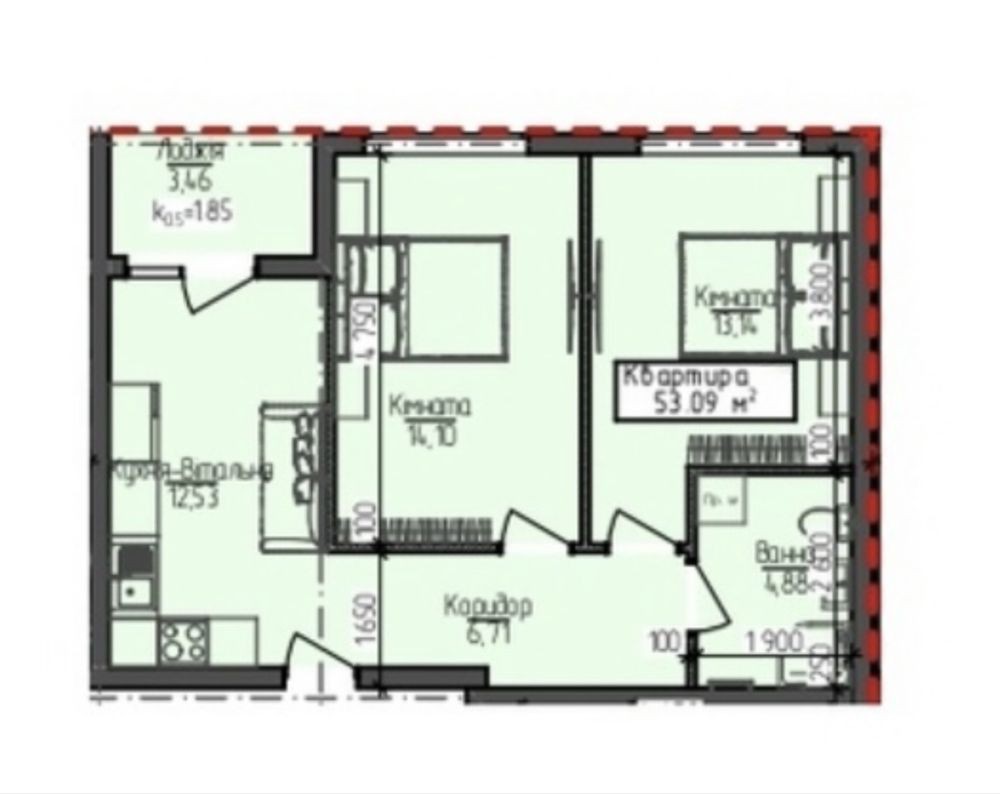 53,09 м.кв - ціна 890$ за квадрат - 47250$