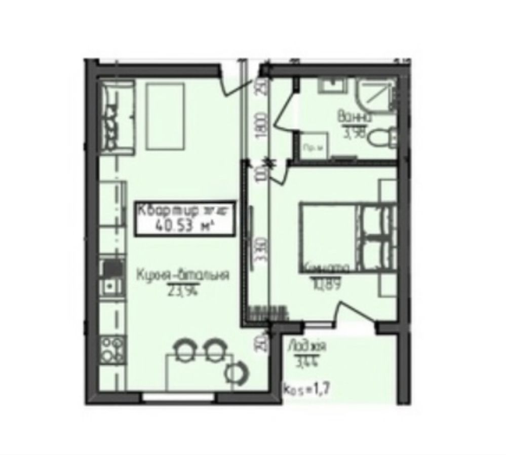 40,53 м.кв - ціна 950$ за квадрат - 38503$