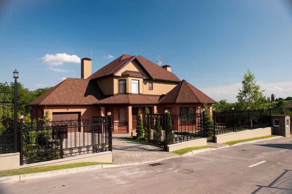 Облицювальний фасад з цегли, м’яка покрівля, двокамерні склопакети.