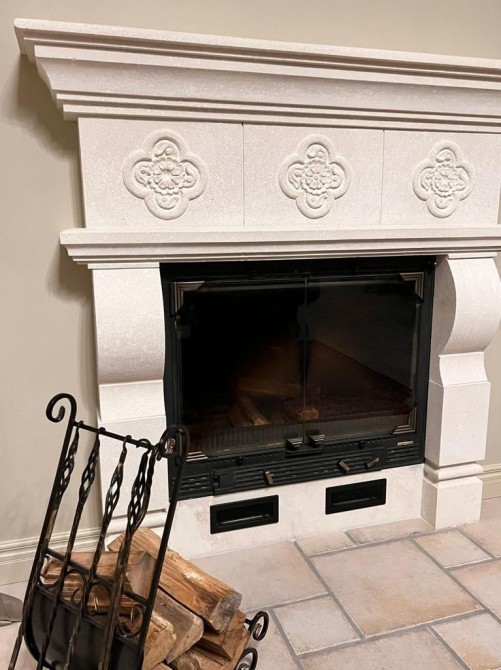 Велику вітальню з каміном Cheminees Philippe;