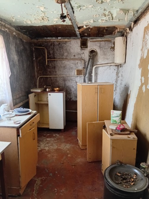 Будинок зі шлакоблоку та обложені цеглой з високим фундаментом ,але потрібен ремонт криші.