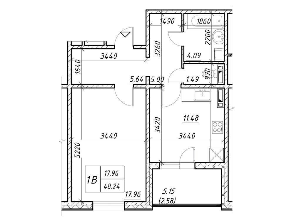 • Общая площадь 48.24 м2