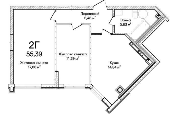Площа: 57,6 м²