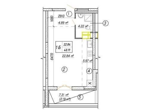 В продажу простора 1к квартира-студія 40.11м2 з власною терасою - 7.31м2!