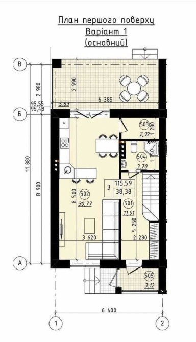 Open space — кухня, вітальня, їдальня, вихід на терасу