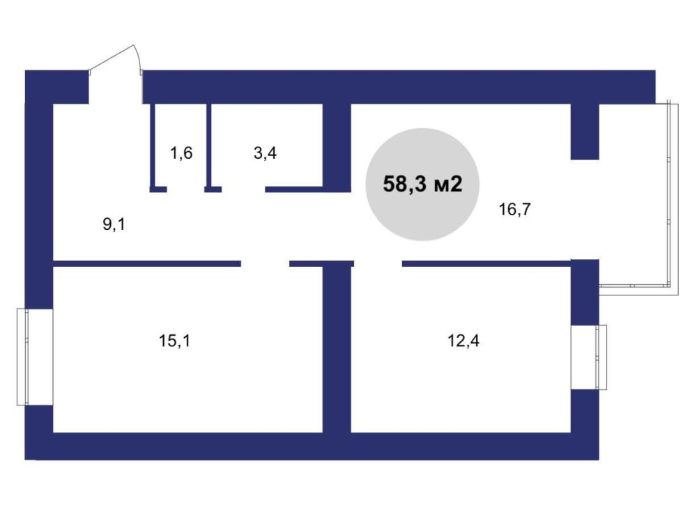 • Общая площадь 58.3 м2