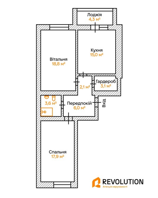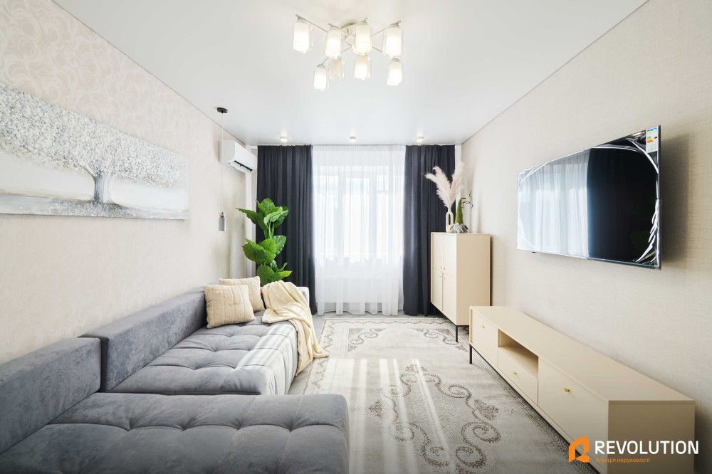 Дві окремі кімнати, простора кухня з виходом на балкон, суміжний санвузол, гардероб/кладовка, великий коридор.
