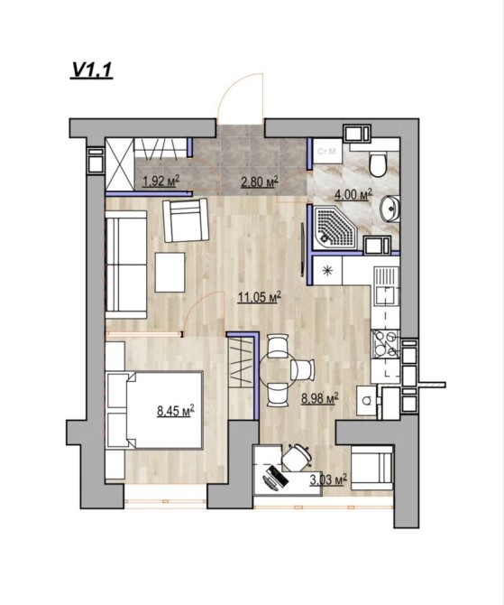• Санвузол — 4,0 м²