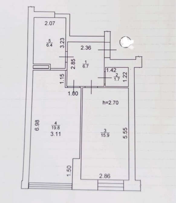 Квартира має велику кухню студію 20м2. Гардеробну кімнату 1,7м2.