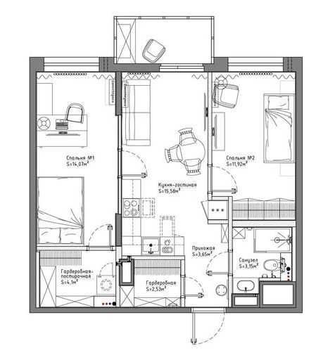 • Функціонал повноцінної трикімнатної квартири