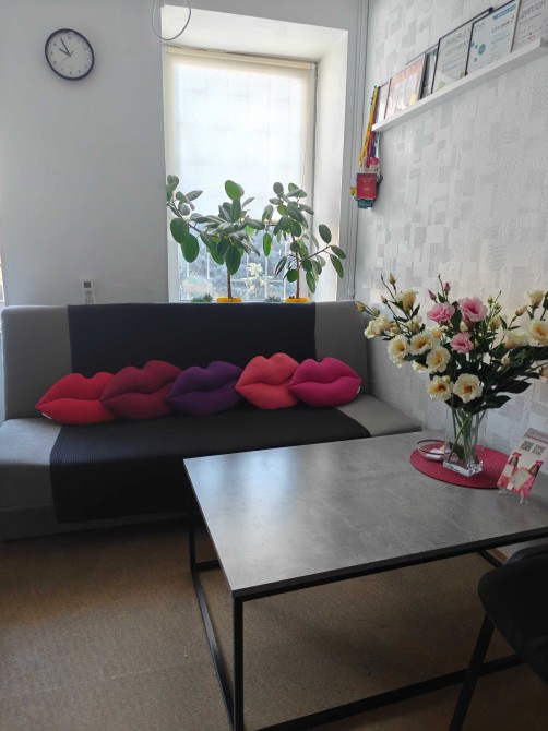 • У салоні: кулер з питною водою, кімната для персоналу, холодильник, шафа для верхнього одягу клієнтів, кавомашина, чайник, санвузол, зона очікування, паркувальні місця на, але їх не багато.