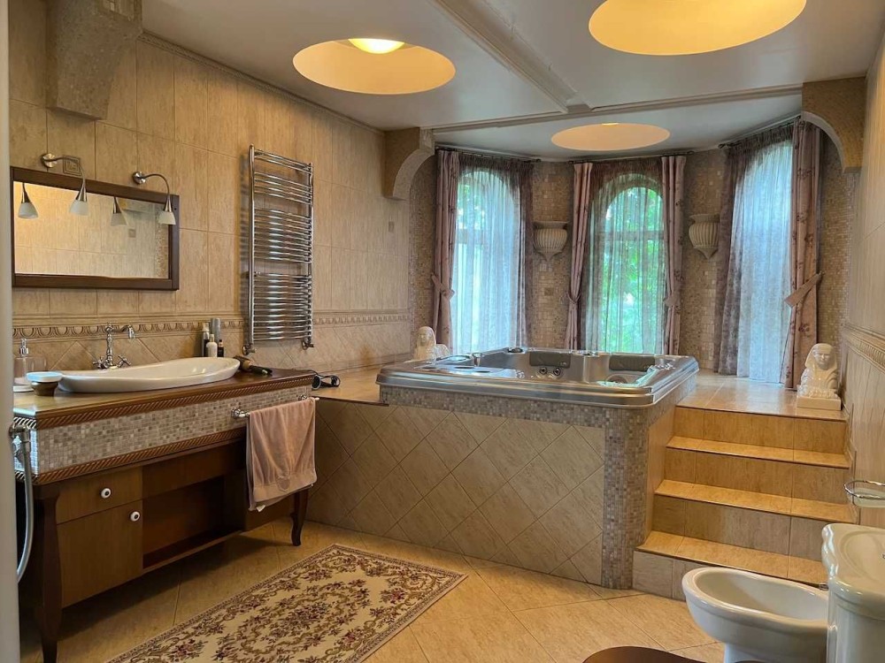 Качественный, невероятно уютный и продуманный дом 560м2 с участком 24 сотки потрясающей красоты! П. Святопетровское, в 5 минутах от Большой Окружной. Все в доме исключительного качества! Большая гостиная с камином, полностью оборудованная дорогой мебелью и техникой кухня, выход на террасу и великолепным видом на пруд с разноцветными лотосами. В доме 3 спальни, 3 санузла, большой кабинет- студия, тренажерный зал, оборудованное место для массажа и косметических процедур. Отдельно построена дровяная баня с холодной купелью и комнатой отдыха. Зона патио оборудованная стационарным грилем, тандыром и всем необходимым для прекрасного отдыха! На участке множество очень красивых декоративных растений и плодоносящих деревьев. В доме все коммуникации – газовое отопление, электричество 25кВт, профессиональная система вентиляции, 2 скважины. В пяти минутах езды вся необходимая инфраструктура – супермаркеты, рестораны, банки и т.д. Вокруг все застроено, зелено и тихо! Цена без торга!
