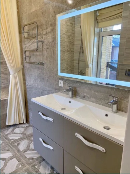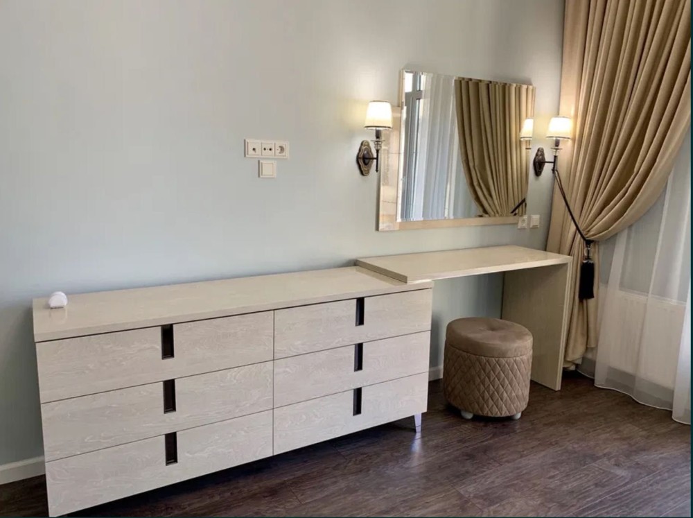 Ремонт выполнен из всех дорогих ЭКО материалов, в единой стилистике, светлые тона, качественная мебель, сантехника, встроенная техника. Ремонт делали для