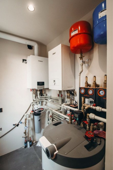 Своя свердловина, каналізація – септик з переливом, електрика – 3 фази, 15кВт.