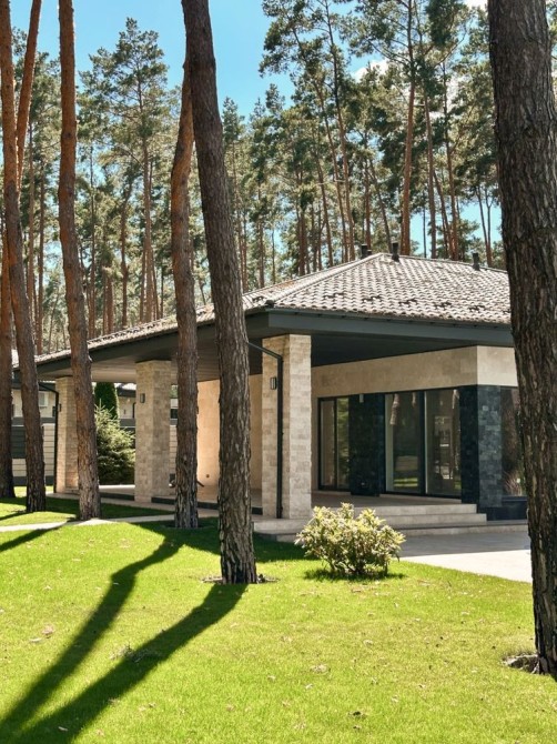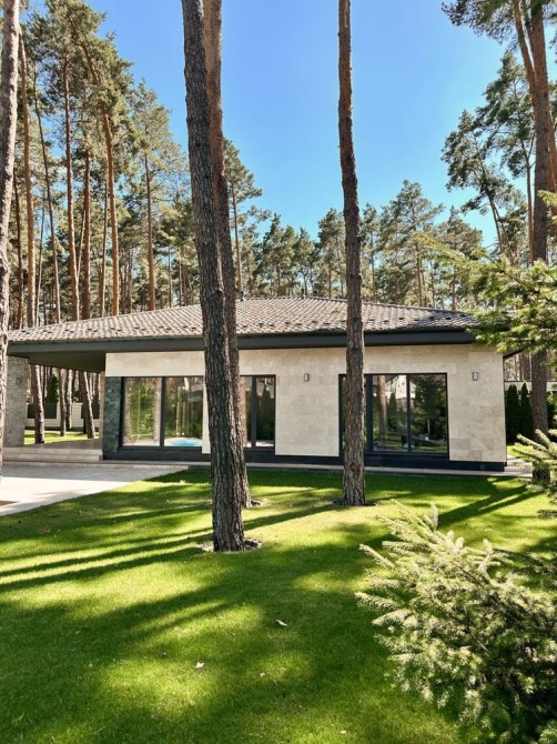 Один з найкращих преміальних проєктів передмістя Києва - ОДНОПОВЕРХОВИЙ КОТЕДЖ в оздоблення ТРАВЕРТИН - Місце казкове - навколо сосни, елітна забудова, найкрасивіша асфальтована вулиця, зручний виїзд на Київ, поряд ресторани Бістро Пекаря та Отаманша.