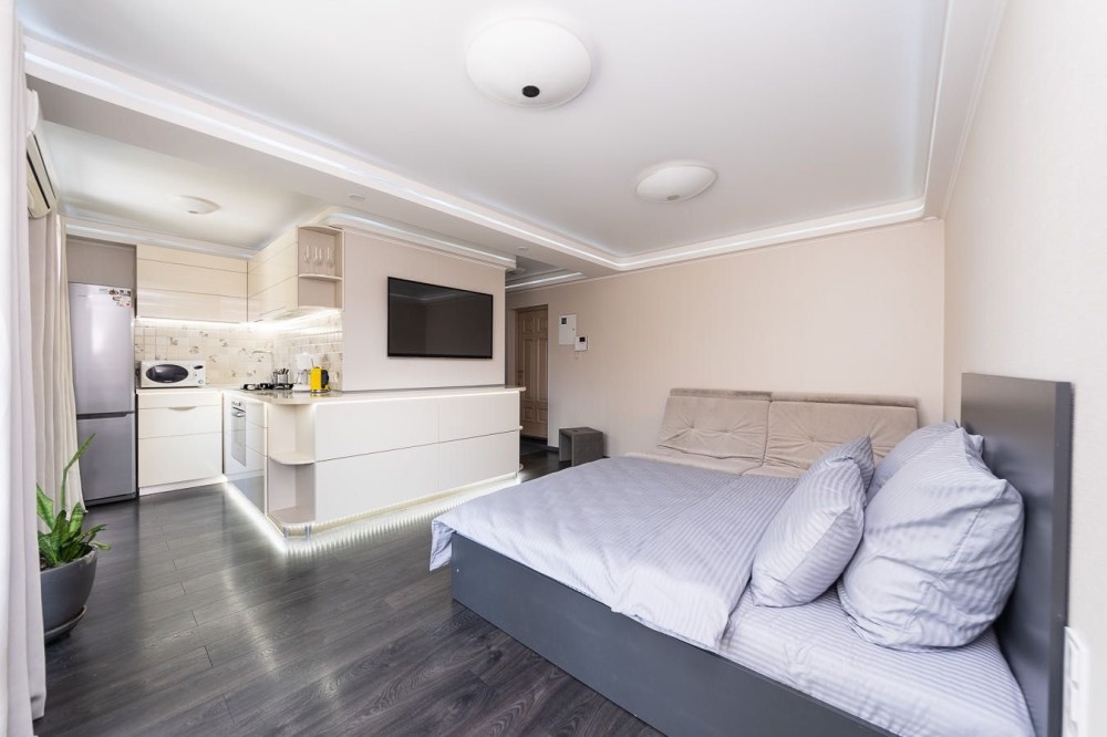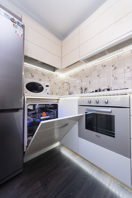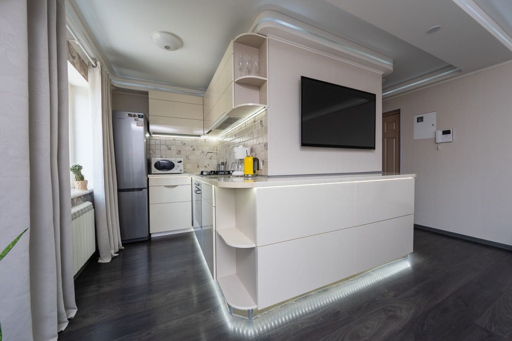 Укомплектована якісною побутовою технікою: вбудована кухня, плита, електро-чайник, холодильник, СВЧ, пральна, сушильна машина, посудомийка, праска тощо. Швидкісний Wi-Fi, доступ до мережі Інтернет.