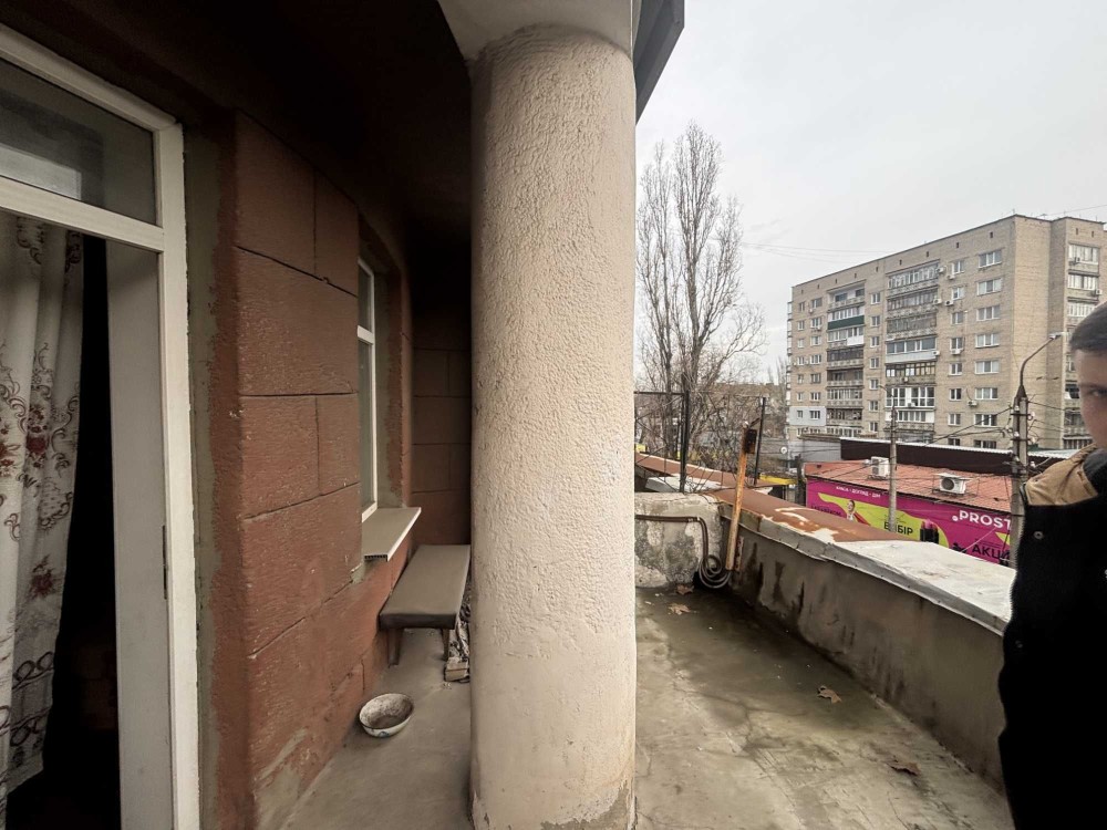 Продається кімната у квартирі спільного заселення з великим балконом прямо над кінотеатром Піонер. Кухня, ванна кімната та вбиральня спільні, але з усіх кімнат ними користуються лише 2, включаючи цю. Є можливість провести комунікації всередину кімнати та зробити вбиральню й кухню всередині, так зробили власники інших кімнат.