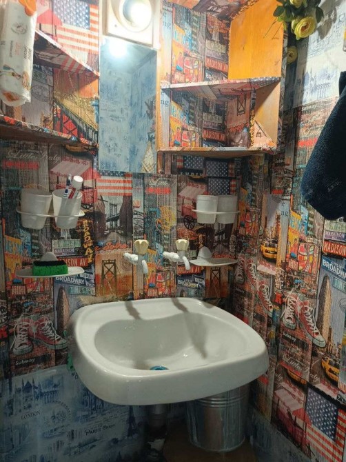 Душ, туалет і приміщення кухні ділиться з двома сусідами (мешканці сусідніх 2 х кімнат: молода жінка та літній чоловік (не власники кімнати що здається).