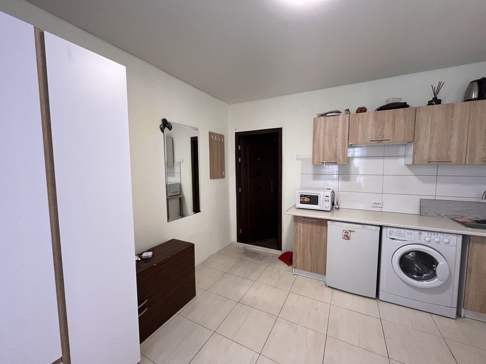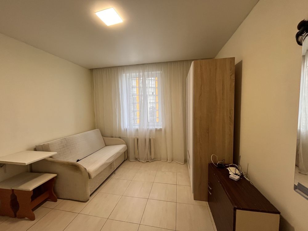Кімната облаштована всім необхідним: встановлена невелика кухня, правльна машина, заведена вода в кімнату, є диван та шкаф.