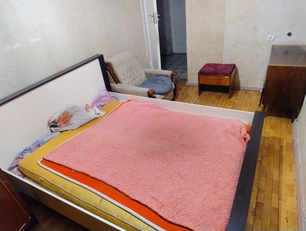 одого працюючого хлопця.в кімнаті велике ліжко, шафа.стіл, вихід на балкон .4500 грн
