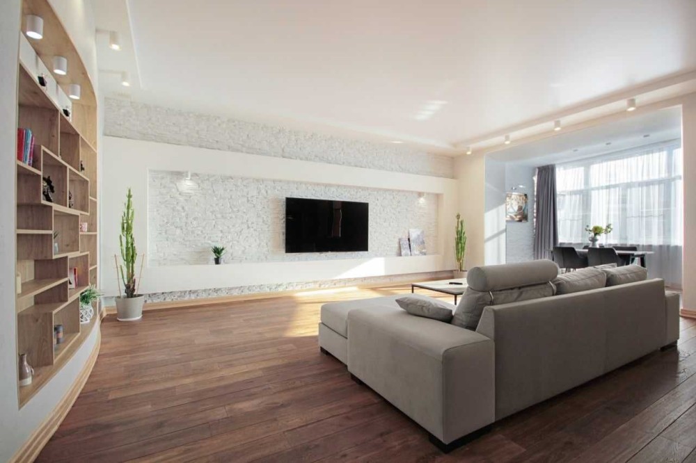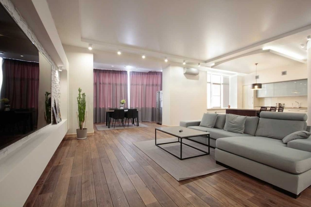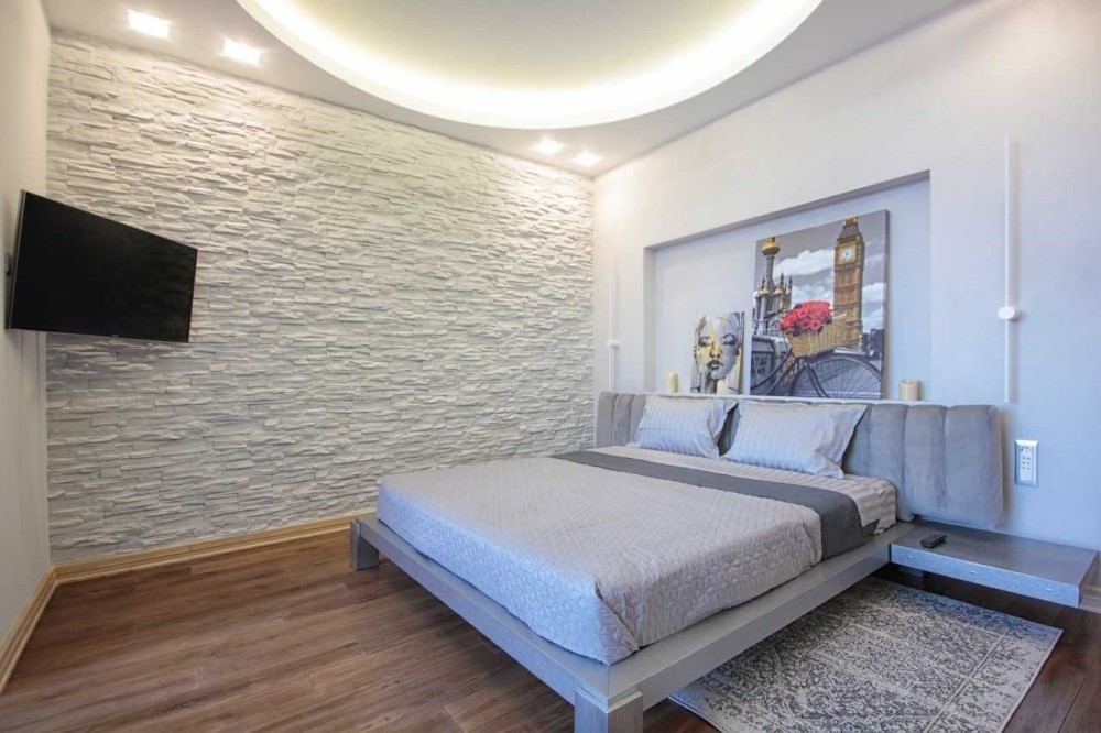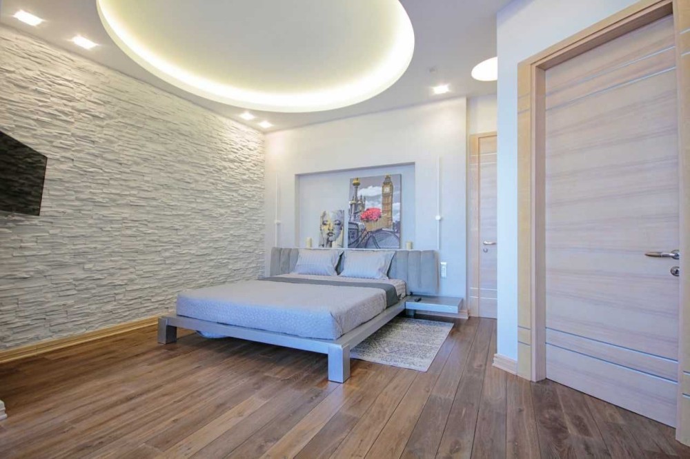 Выполнен ремонт по эксклюзивному дизайн-проекту, на полу паркетная доска, стены-венецианская штукатурка, отделка римским камнем. Французские натяжные потолки.