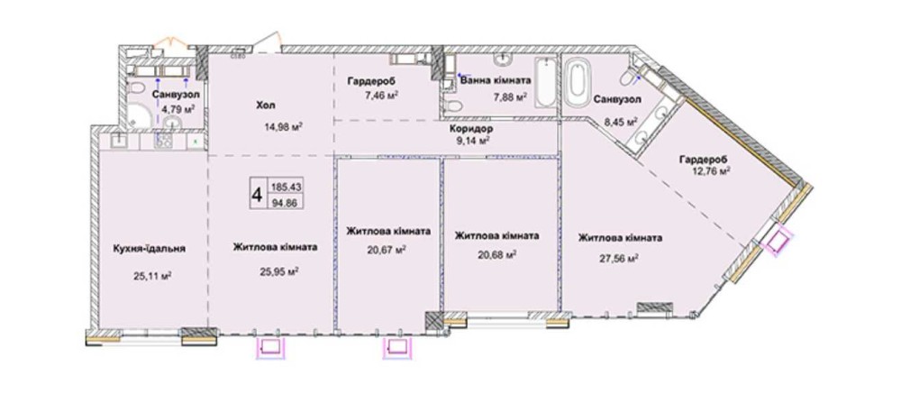 Загальна площа 185.43 м2.